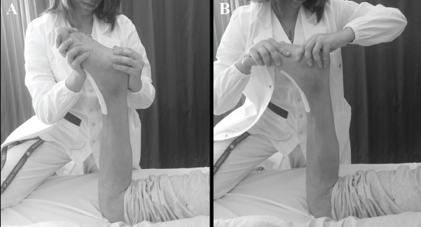 Figure 2: Alternating pressure on the heel (A) and midfoot (B) in prone position and knee flexed at 90º. View Figure 2