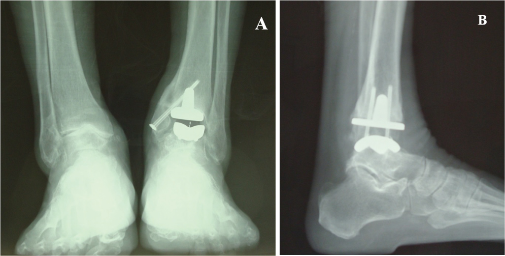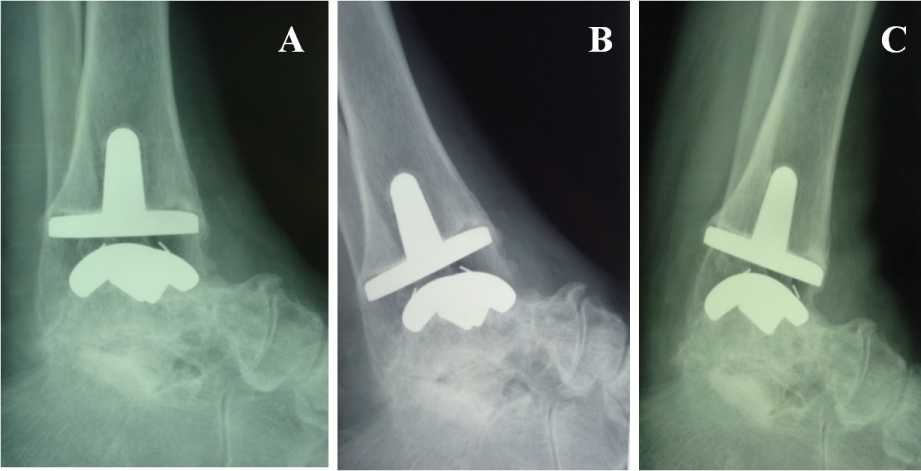 Patients were not considered for total ankle arthroplasty if they were diagnosed with peripheral artery and metabolic diseases, obesity (BMI > 30), capsuloligamentous instability, and severe deformities at the knee, hindfoot, or forefoot.