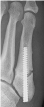 A fifth metatarsal base fracture (Jones fracture) is a fracture located 15-20 mm distally from the tuberosity of the fifth metatarsal. This type of fracture, first described by Jones in 1902 [1,2] is common in athletes and is often difficult to treat [3,4], with patients experiencing delayed healing, non-union, and refracture.