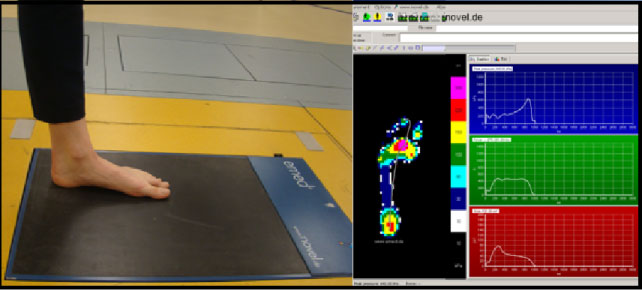 Figure 1: Plantar pressure measurements, including the contact area, peak pressures, and timing during stance phase, were performed using the EMED platform. View Figure 1