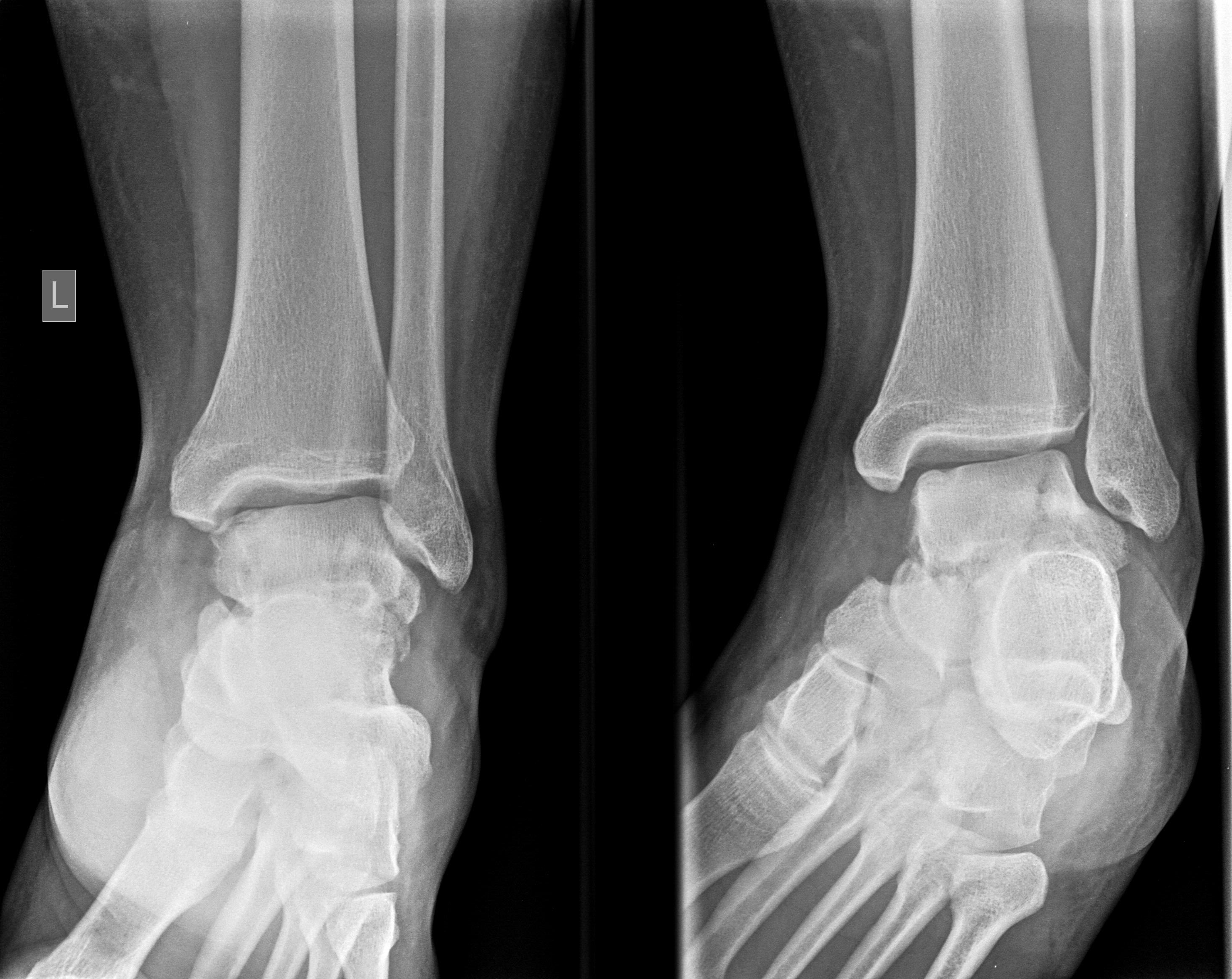 A 19-year-old patient presented to the emergency department of our institution after sustaining a left foot injury due to a motor vehicle injury. The patient was unable to bear weight, because of severe pain around the left ankle joint. On examination, significant swelling around the ankle and midfoot was noticed. Ankle range of motion was significantly reduced and palpable tenderness was located over the medial side just distal to the medial malleolus and over the lateral side just distal and anterior to the lateral malleolus. Hindfoot varus malalignment was also noticed on inspection. Patient reported a past medical history of an old sprain on the same ankle, which he was asymptomatic for.