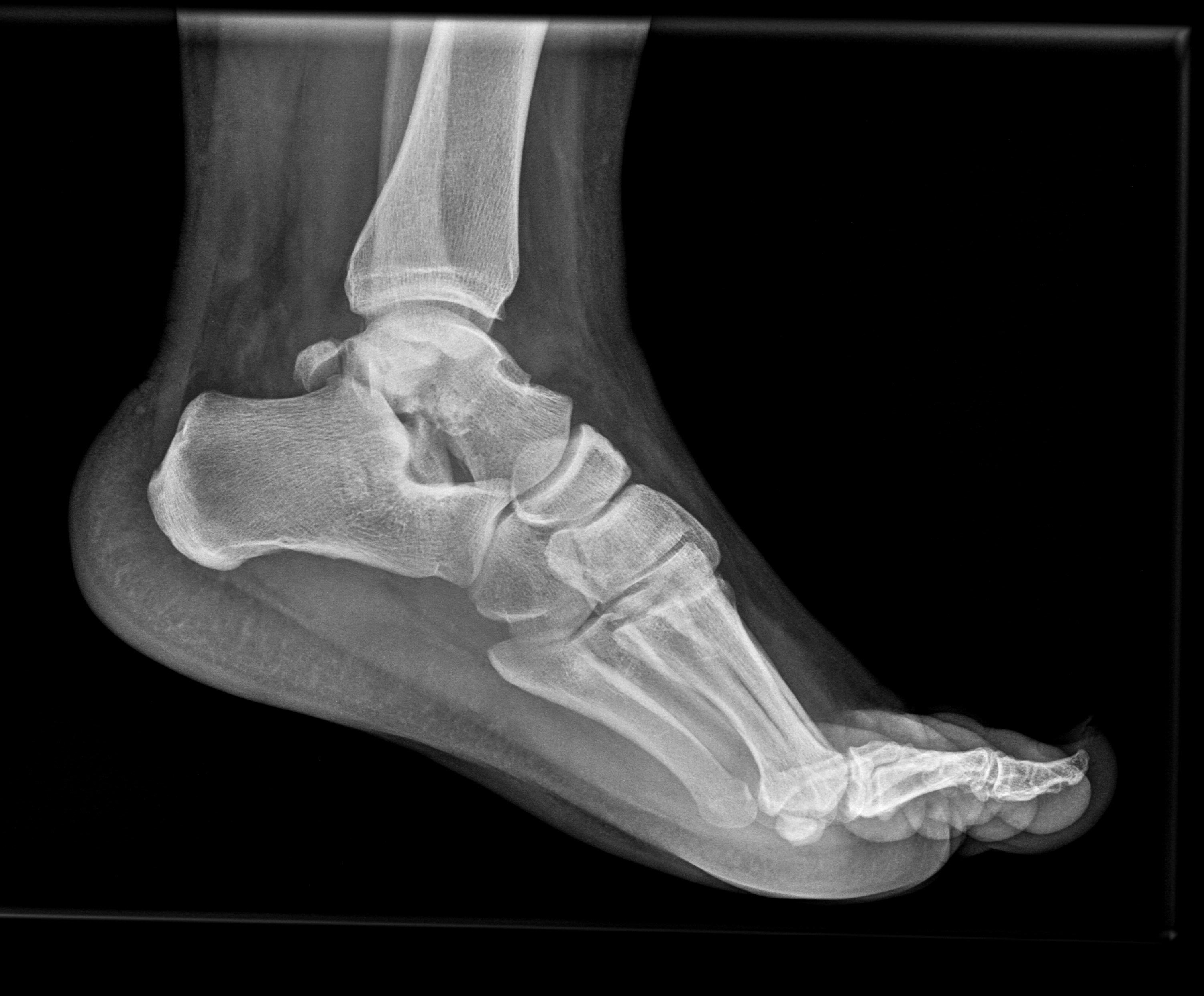 Figure 2: Foot and Ankle true lateral view. Sustentaculum tali fracture and subtalar disruption due to talar body fracture is identified.