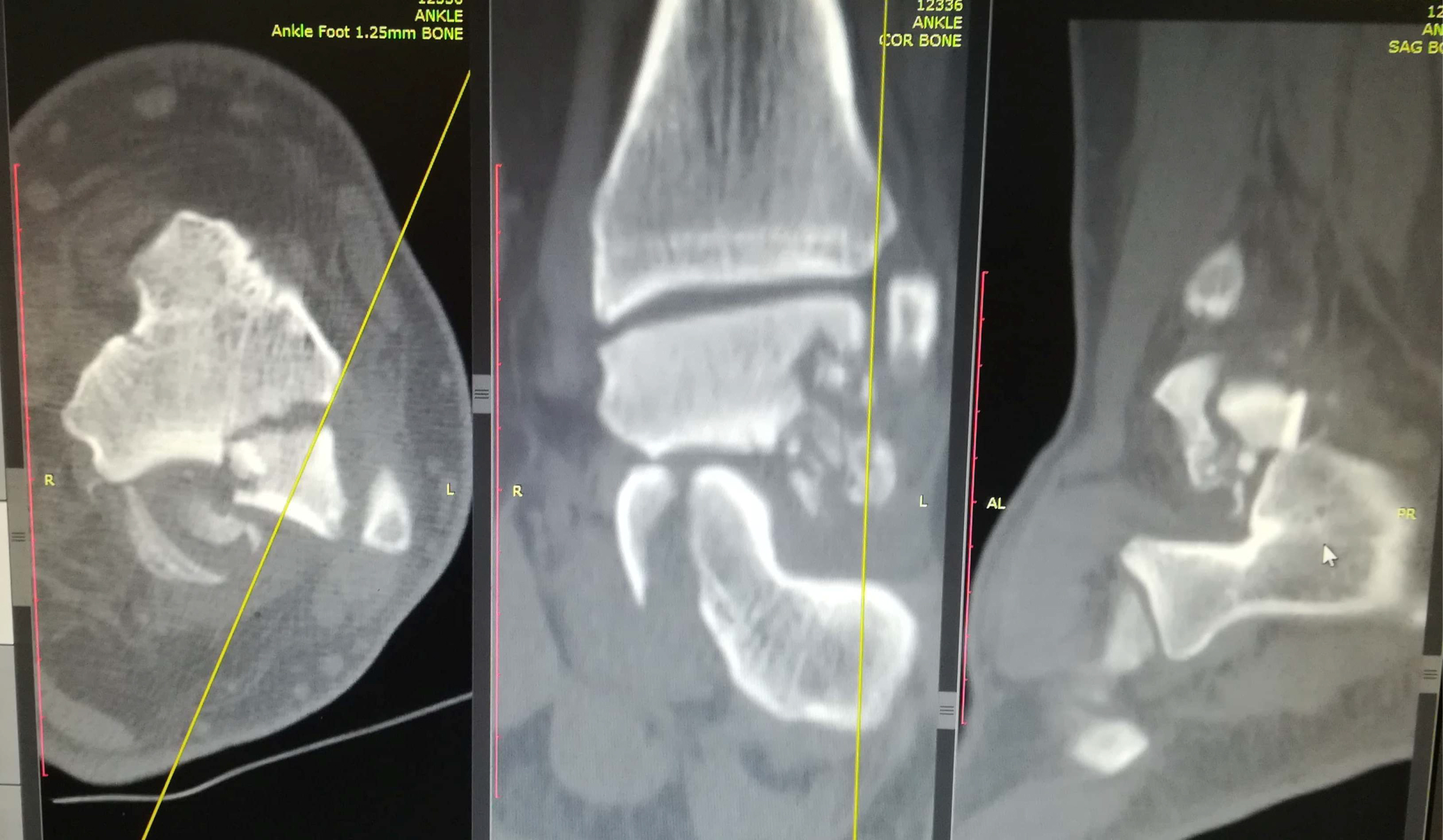 Figure 4: Ankle CT scan showing sustentaculum tali fracture with gross displacement.