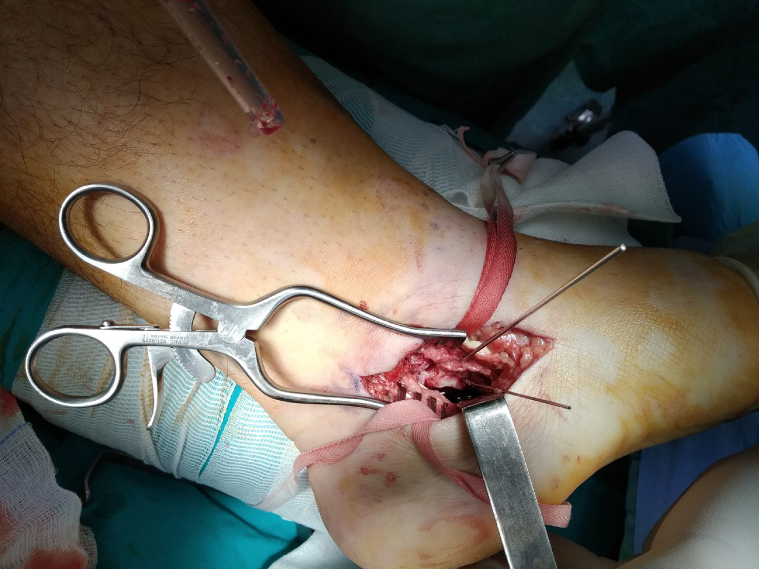Figure 7: Intraoperative view. Sustentaculum tali fracture exposure.