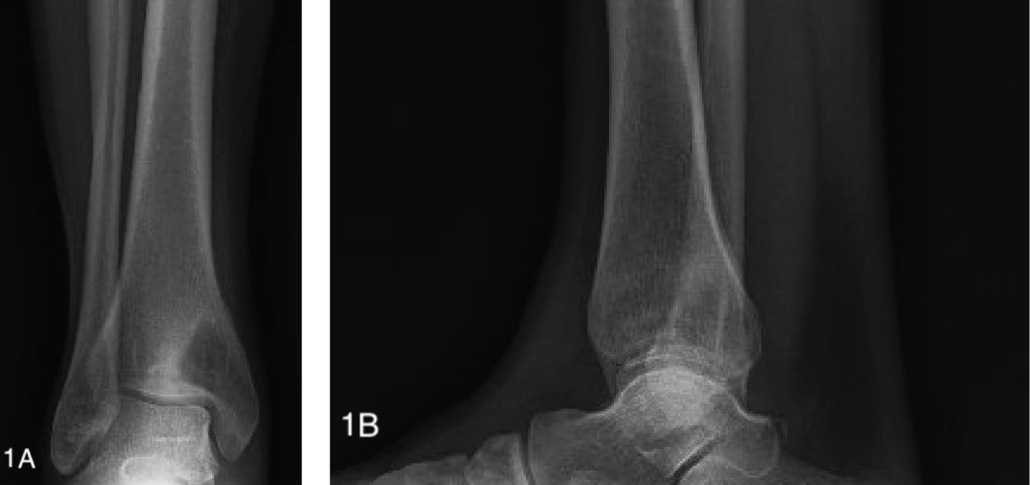 Figure 1: Conventional radiographs of the ankle reveal a lytic lesion without substantial cortical involvement. AP (a) and lateral (b) images are shown. View Figure 1