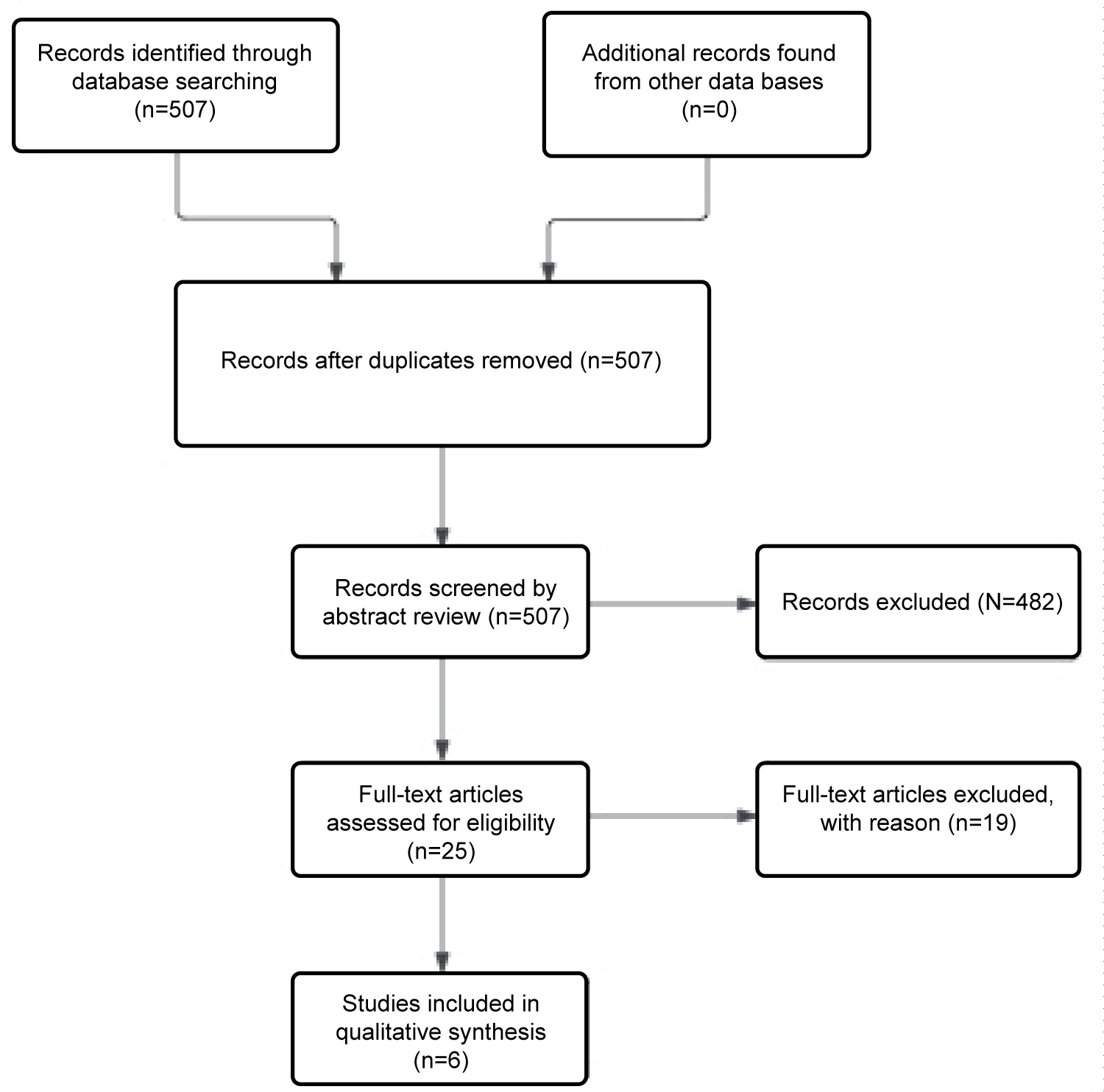 A total of 508 articles were identified in the initial search. Each article was reviewed by 1 of 5 junior authors. If there was a question as to whether a particular article met the inclusion criteria, a second opinion was provided by the senior author (RM). After a thorough review of the pooled articles, 7 studies met the inclusion criteria. Data regarding functional outcomes as well as complications following LCL with PTWs were compiled by 5 researchers and accuracy was confirmed by the lead author (Figure 1).