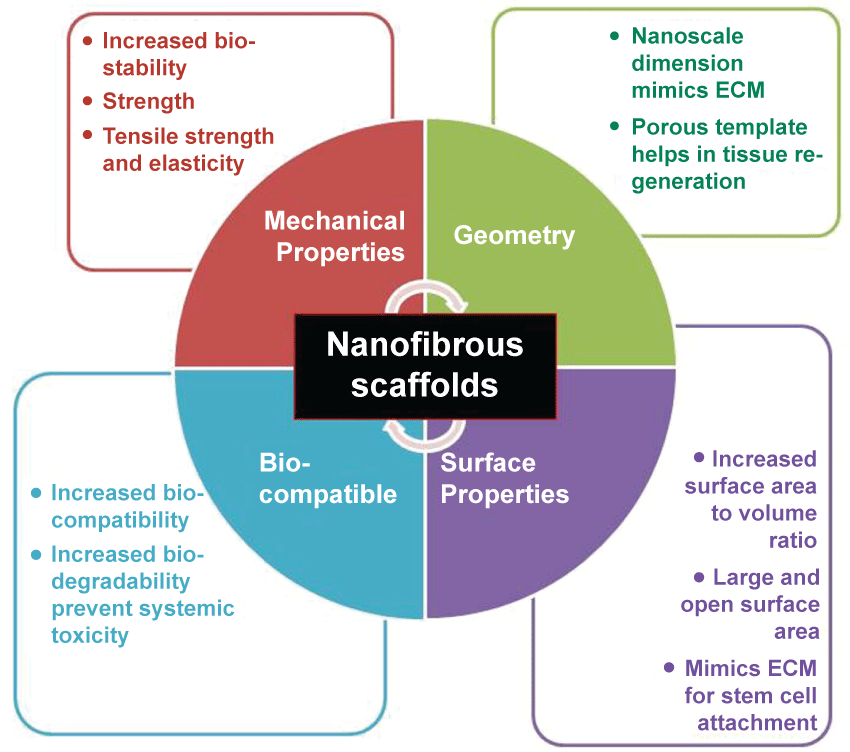 Nanotechnology is a multi-disciplinary field that aims to create materials and devices that can be applied in aerospace, medicine, information technology, agriculture and energy production. As nanotechnology advances, new fields are explored with advanced technologies to improve the quality of life. With the progress in science and technology, nanoparticle (NP) synthesis has accelerated, with emergence of new methods using various natural products for eco-friendly (green) synthesis of NPs. Plant extracts, microbial cultures and other natural compounds are widely exploited for the fabrication of NPs. Other than NPs one of the emerging fields is based on nanofibers. Synthesis of biogenic nanofibers for scaffold modelling has attracted widespread applications in biomedical field. Nanofibers are fibers of diameter ranging up to 100 to 1000 nm. Interwoven meshes of nanofibers are termed nanofiber scaffolds, which can be random or aligned [1]. Currently nanofiber fabrication is performed using three main techniques: electrospinning, self-assembly and phase separation, of which electrospinning gives scaffolds with most promising TE applications.