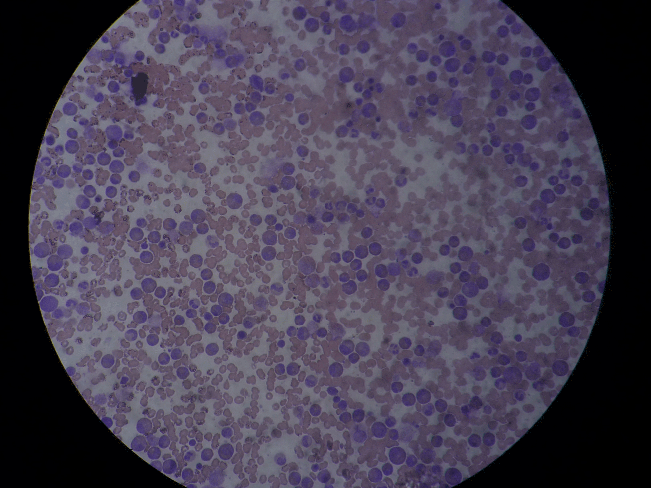 Figure 1: Bone marrow showing absolute eosinophilia with mature forms.