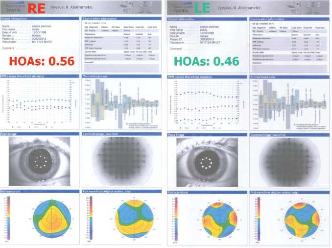 Figure 3: The high order aberration data of both eyes, three months after surgery.