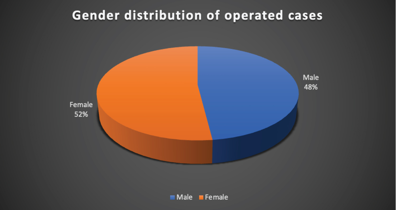 Figure 1: Pie chart showing the gender distribution of operated cases.