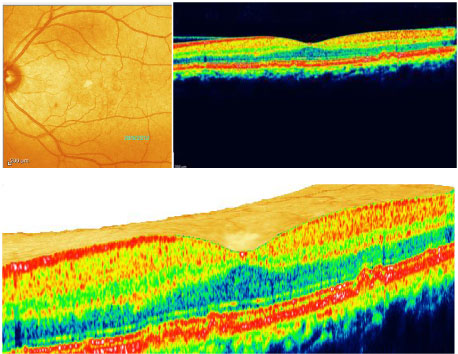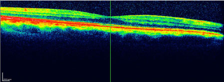 Figure 1: OCT right retina on 2012.9.28 before treatment by alimentary complementation. View Figure 1