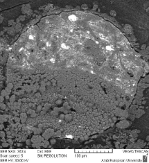 Sections were immersed in 10% nitric acid for 1 minute to remove debris, rinsed in distilled water, and samples were dehydrated using air and ethanol, and mounted on SEM stubs with carbon adhesive, As shown in Figure 5, untreated specimens exhibited surface artifacts and debris that impaired visualization of the filling margins under SEM, and directly Post-treatment imaging (Figure 6) reveals a cleaner dentin-filling interface, allowing more accurate evaluation of marginal adaptation and internal morphology. Samples were examined using a VEGA XMU SEM (TESCAN, Czech Republic) under low vacuum (20 Pa), 7 kV, and 20 μs scan speed.