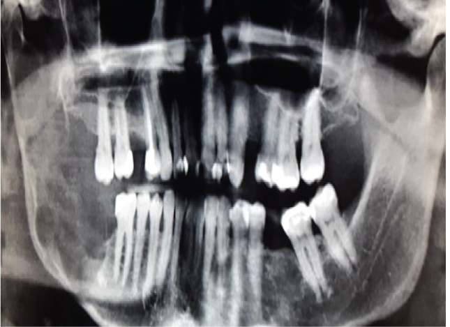 Figure 1: Large OKC in the right posterior region of the mandible demonstrating its aggressiveness. View Figure 1