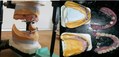 With the patient shown, in agreement with the prosthetist and prosthetics technician, respecting static principles, we made a compromise, while preserving the stability of the stroke, where the patient could normally chew and speak, without fear that the prosthesis would fall out. We are also pleased with the exceptional aesthetic achievement, because the dental liners in both jaws compensated the spongy ridge in the horizontal projection, and, on the patient's satisfaction, we managed to roughly achieve the physiognomy that it had before the loss of the teeth.