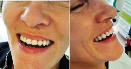 After the trial was satisfactory, the definitive dentures were made and the Dolder's bar inserted onto the implants and their screws (Figure 3). In the last visit to the patient, a definitive work was completed, which was fulfilled by our patient, and, most importantly, her expectations (Figure 4).