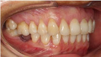 The functional findings revealed a 2 mm. extrusion of tooth 1.6 and gingival recession due to the early loss of tooth 4.6. A conservative treatment was planned involving Orthodontics, Oral Rehabilitation and Implantology.
