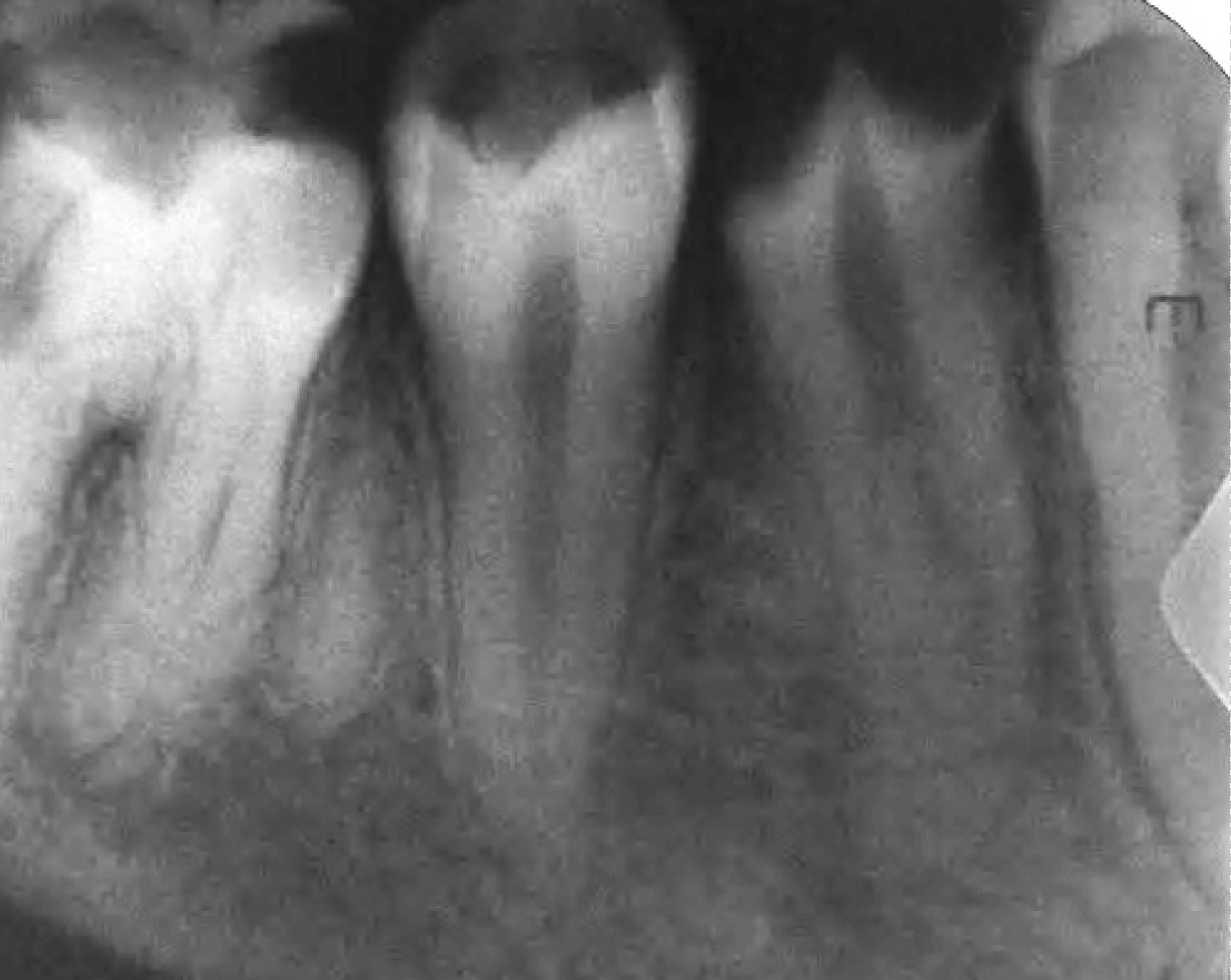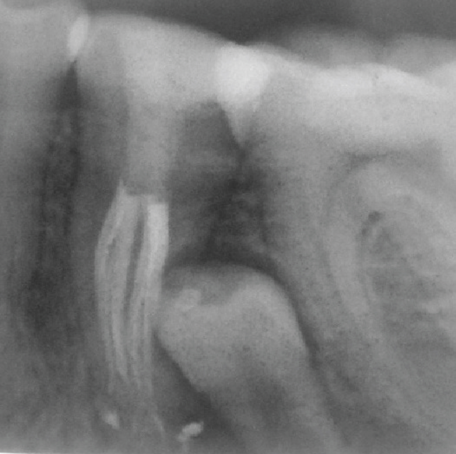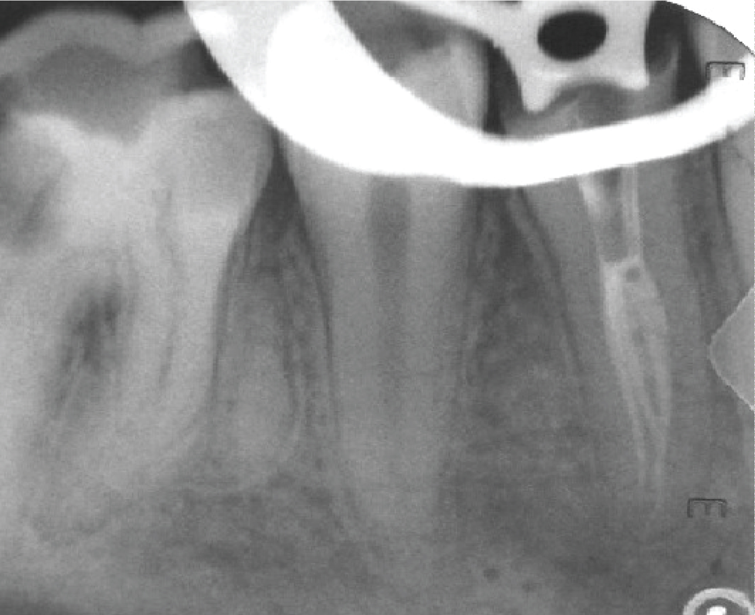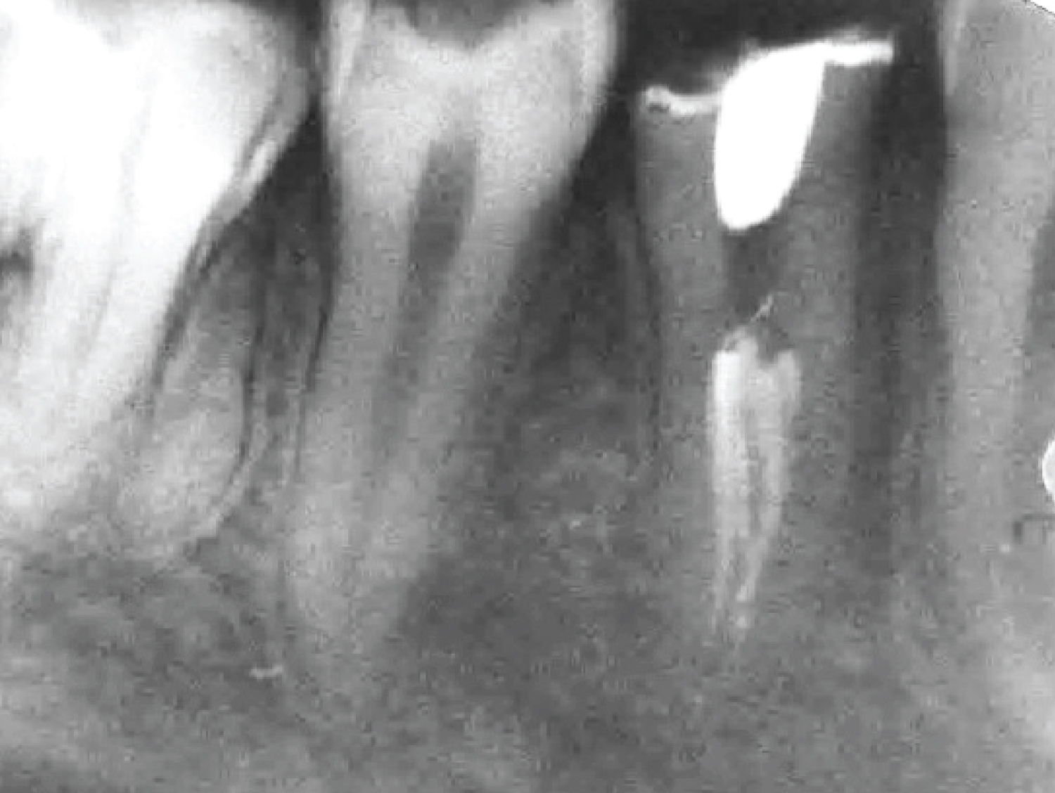 Figure 1: A preoperative periapical radiograph of tooth #44.
