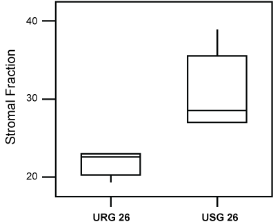 Figure 5: Box-plot of the values of the Stromal Fraction of groups USG26 and URG26. Lesser values (P = 0.009) of the Stromal Fraction, were observed in the group exposed to ROFA.