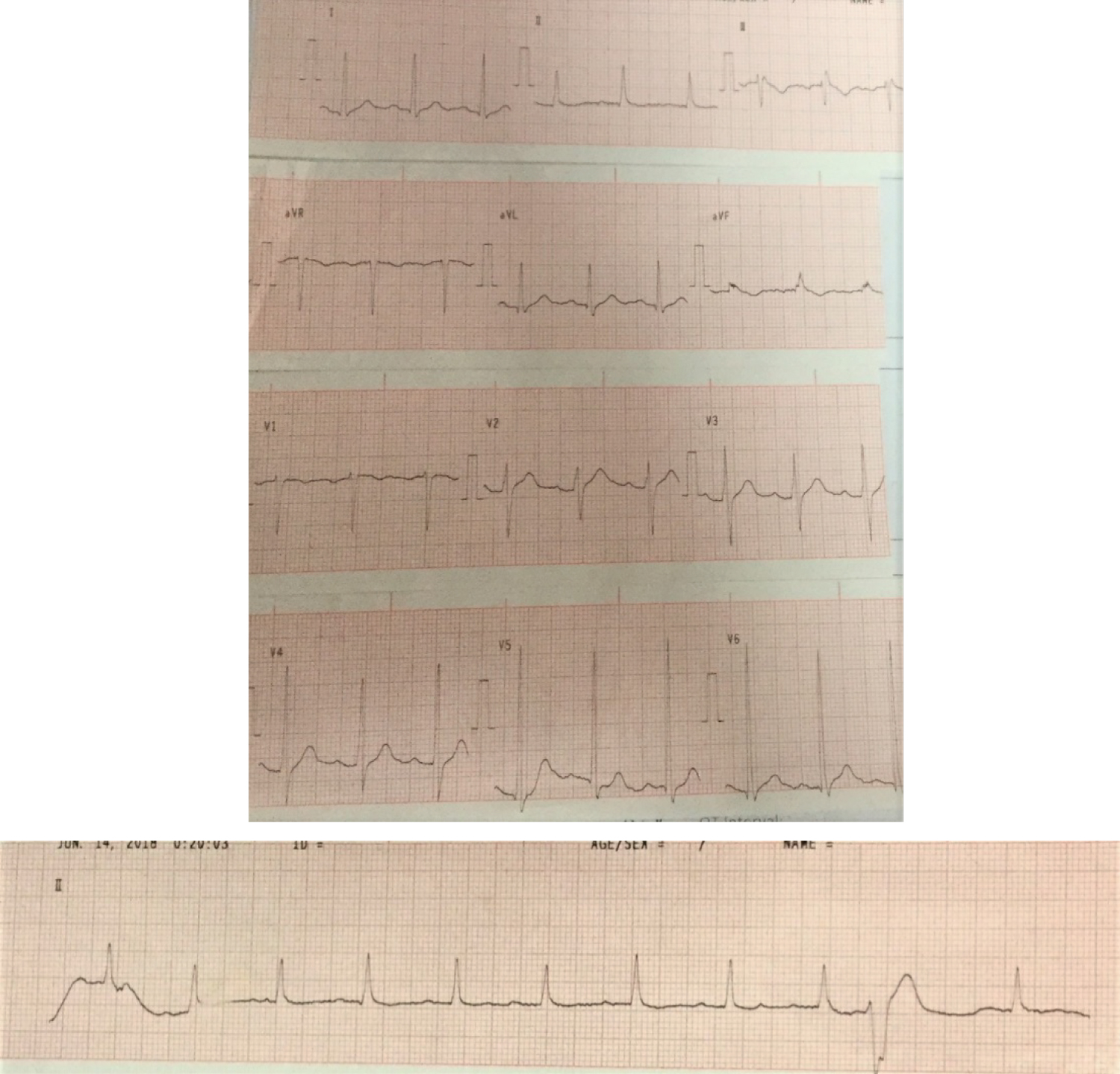 The 12-lead electrocardiogram (Figure 2) showed sinus rhythm, left ventricular hypertrophy, isolated premature ventricular contraction, non-specific T-wave changes and QRS alternans.