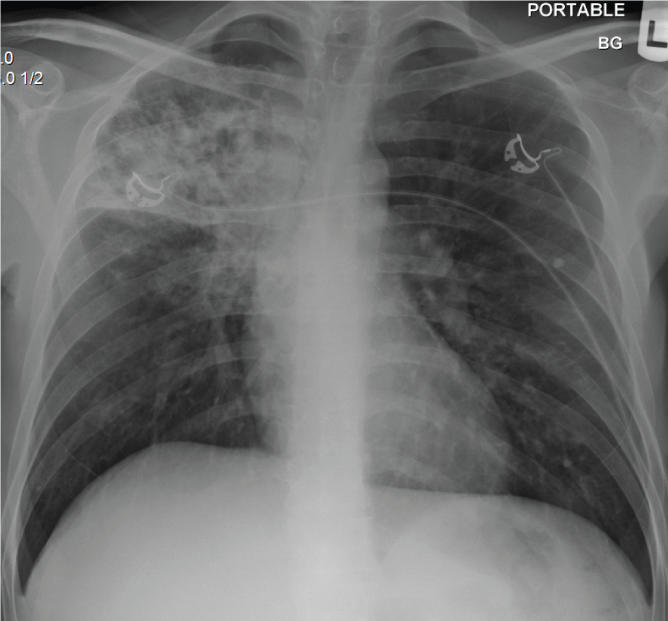 Figure 1: Chest radiograph showing right upper lobe consolidation and