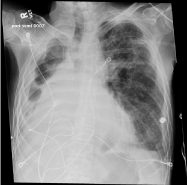 Figure 3: Disease progression seen on PA chest X-ray with tracheal deviation. View Figure 3
