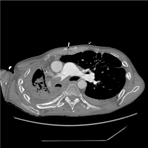 Figure 5: CTA Chest Contrast showing encroachment of main pulmonary artery by disease. View Figure 5