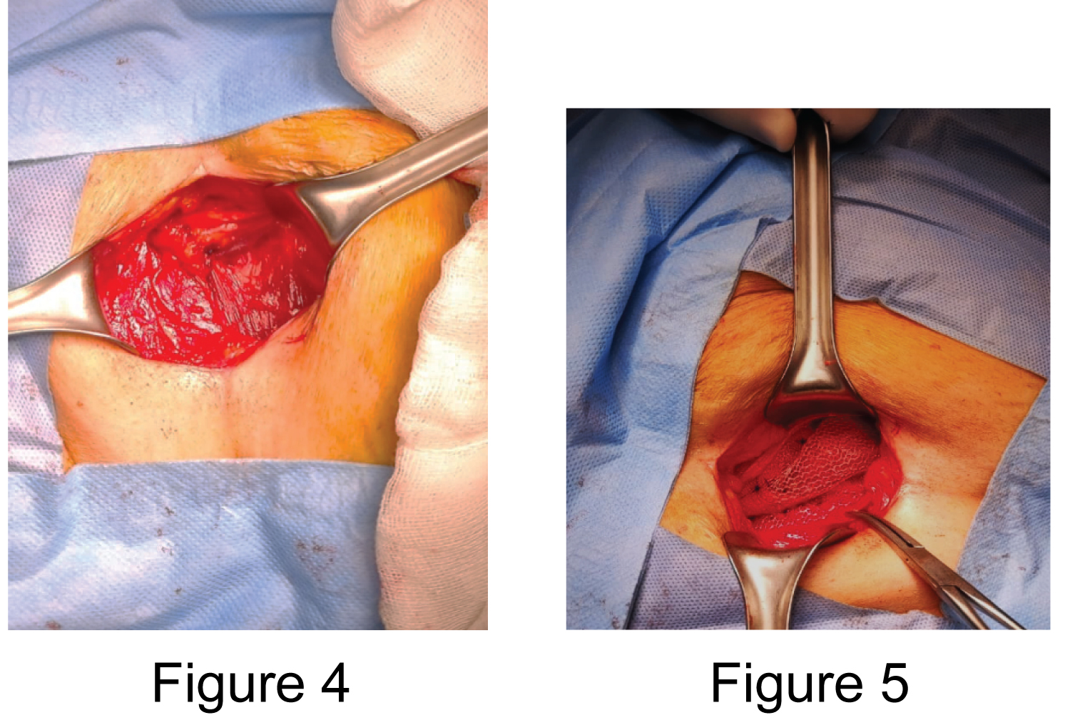 Figure 4 and 5: Right and left inguinal plasty with mesh and umbilical plasty without mesh were performed.