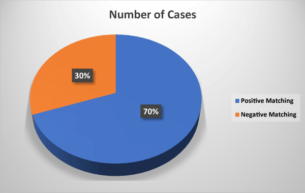 The matching results in (Table 4 and Figure 2), showed a total of 110 positive matching cases and 48 negative matching cases. This indicates that the diagnostic tool or method used successfully identified 110 cases where the test result matched the reference standard as positive, and 48 cases where it matched as negative, reflecting a consistent performance in both positive and negative classifications.