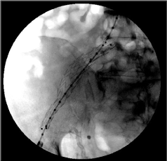 Figure 2: Placement of an exclusion stent graft in the right common and external iliac arteries. View Figure 2