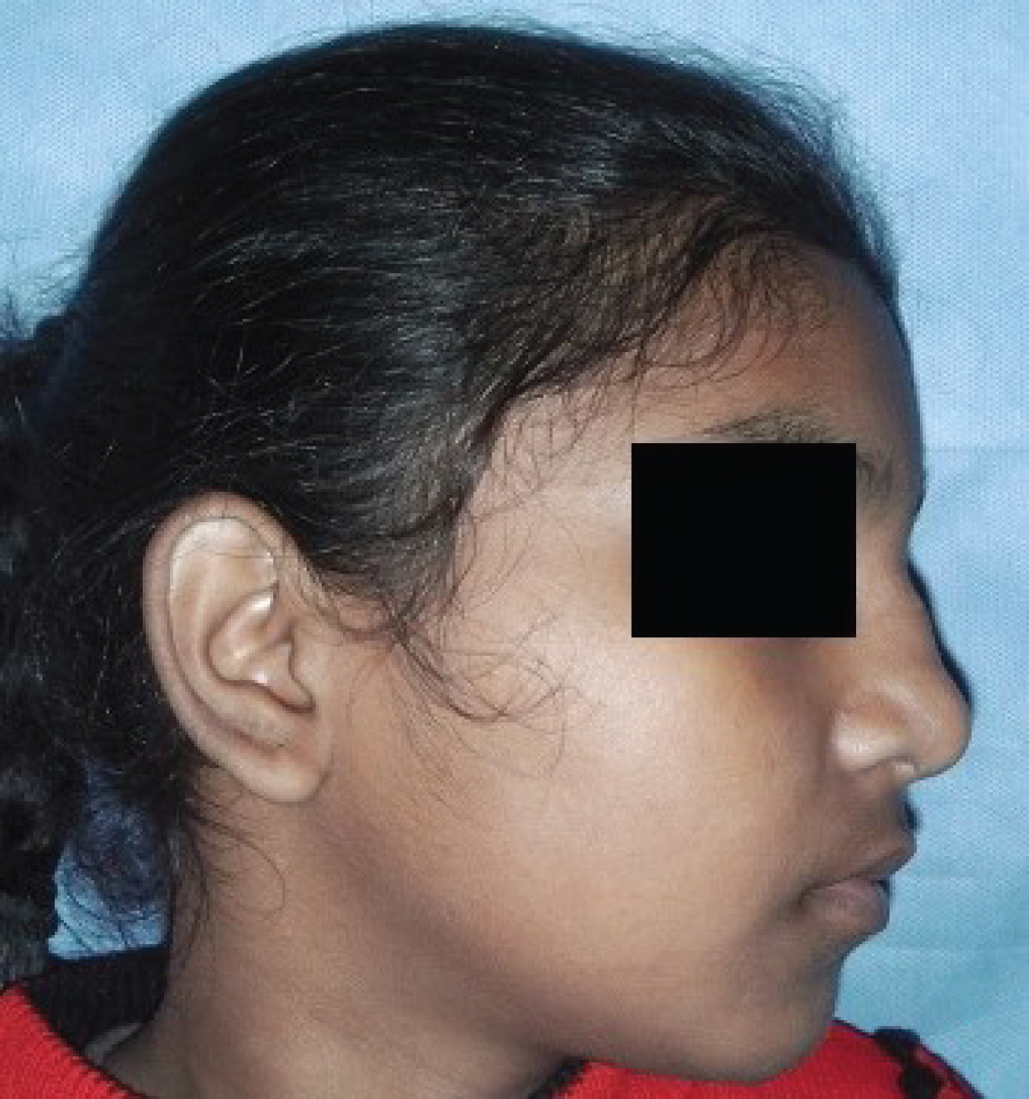 A 12-year-old female presented with a swelling over nasal dorsum of few days duration (Figure 1 and Figure 2). She had a pit over dorsum of nose, since birth, from which occasionally greyish, cheesy, sebaceous material was expressed, for which medical attention was never sought. There was no history of nasal infection or abscess.