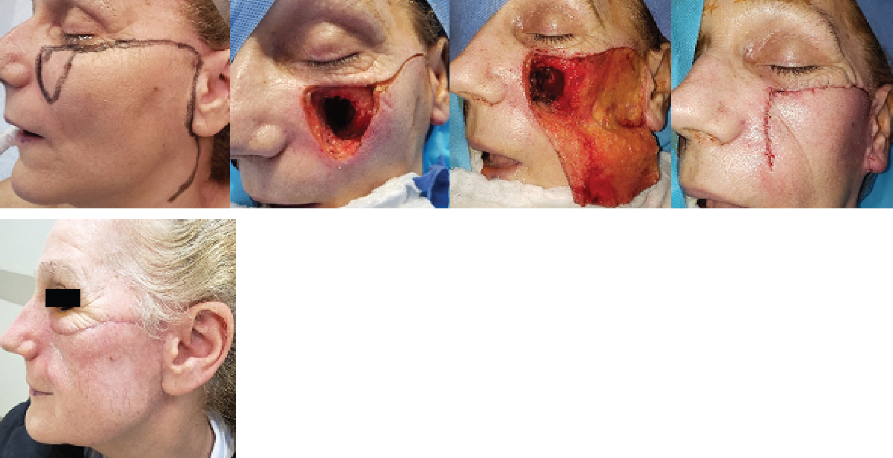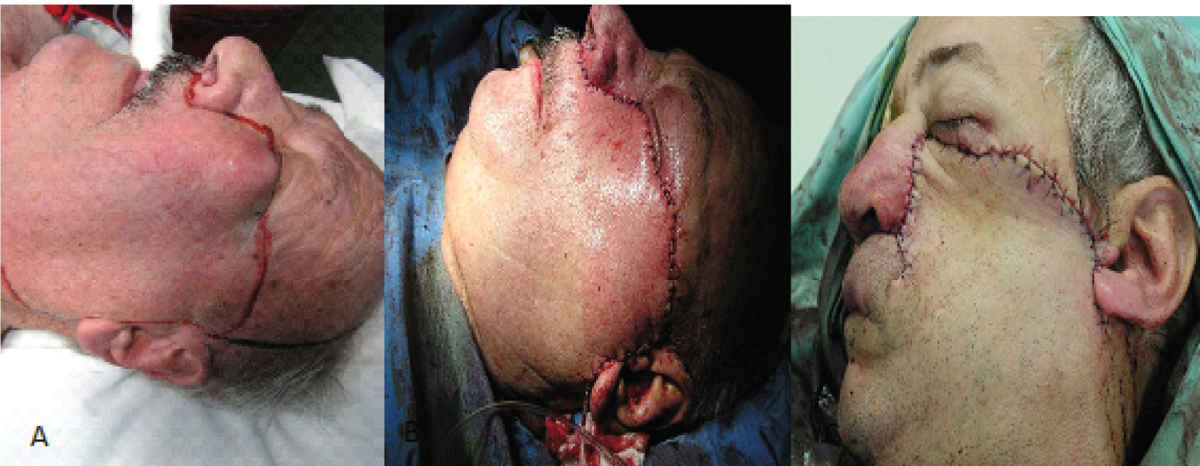 Sometimes different facial regions must be repaired, and different flaps must be used to achieve a good functional and aesthetic result. Local flaps and in cases of extensive defects, regional flaps are an excellent option for the reconstruction.