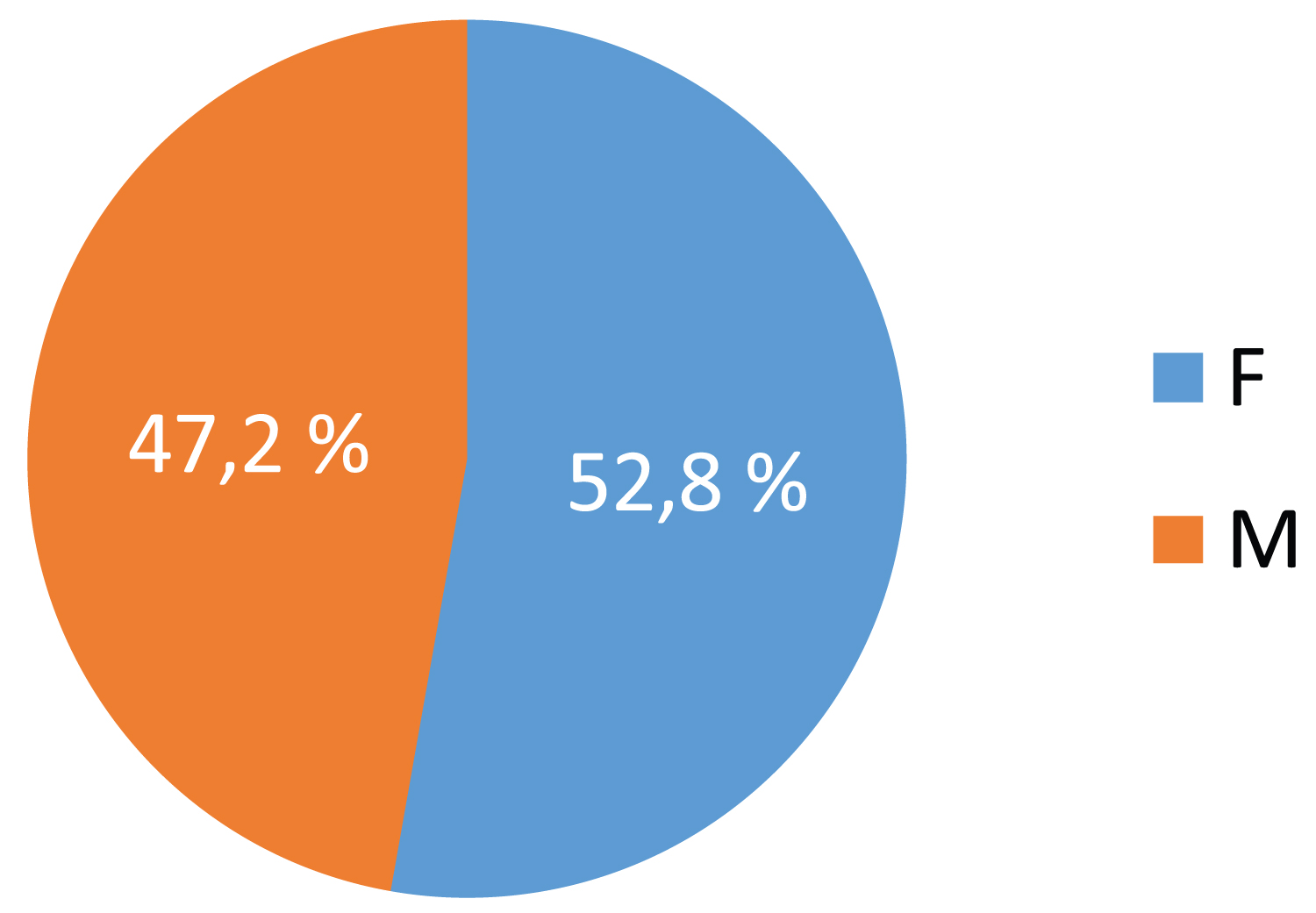 Figure 3 shows the population distribution of the subjects according to sex. Among the 341 participants 160 (47.2%) were men and 181 (52.8%) were women.