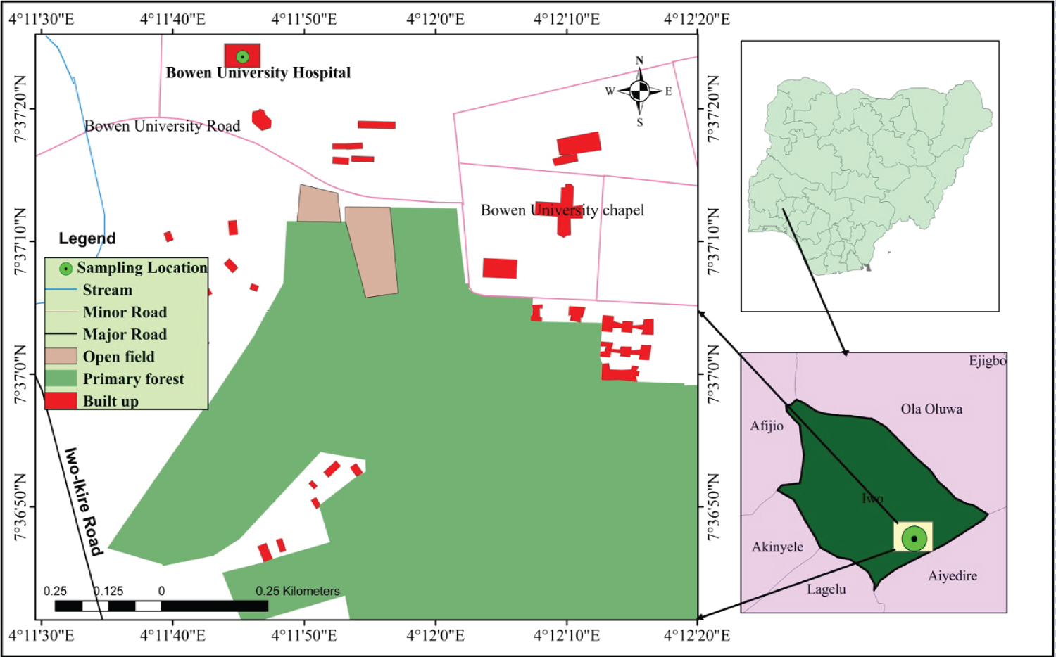 Figure 1: Map of the study area showing the sampling location (Inset: maps of Osun State, Nigeria and showing the location of the study area).