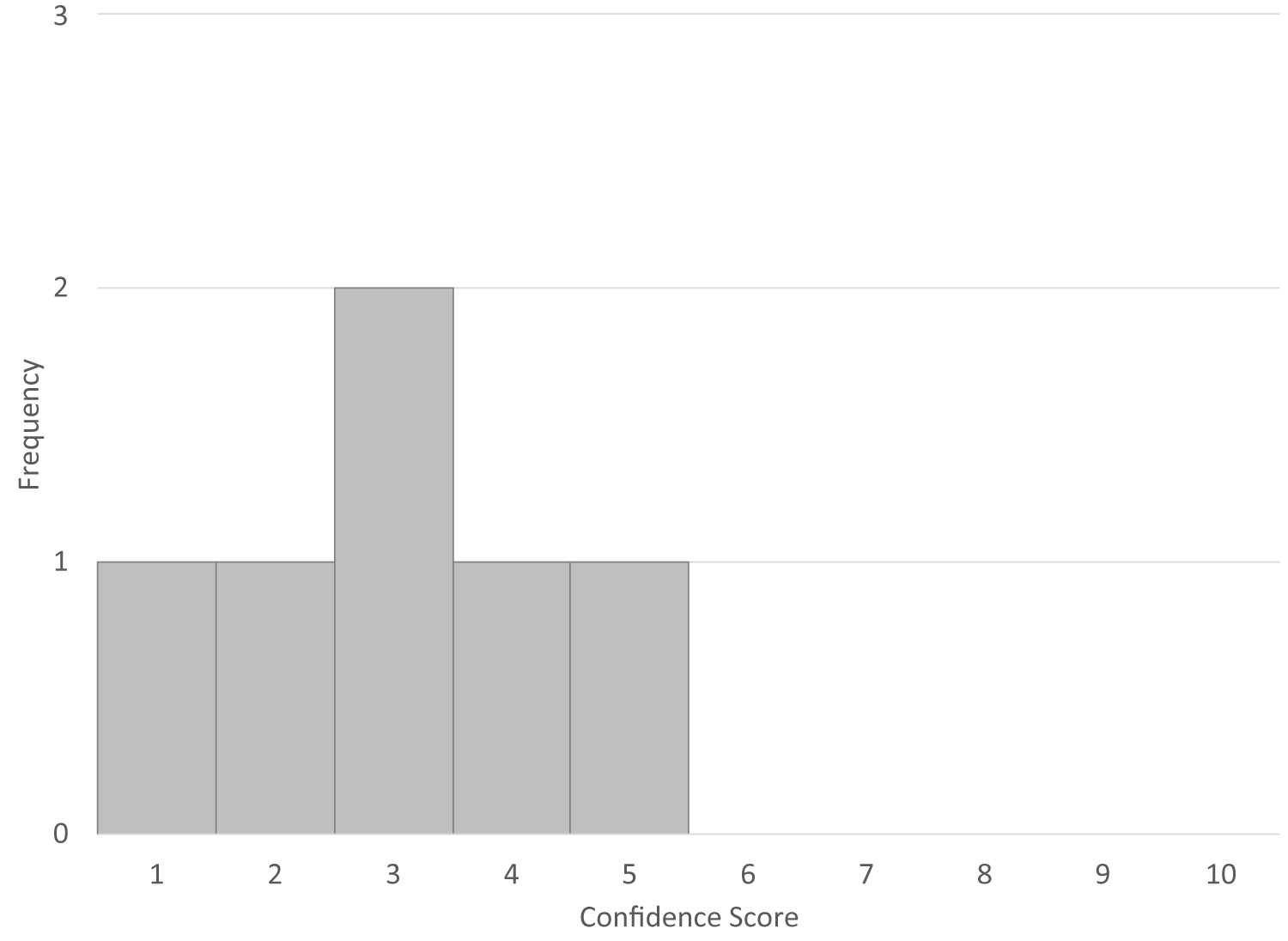 After reviewing the available meta- and pooled analyses for glyphosate, panelists were asked their opinions on the degree of confidence in a causal relationship between glyphosate exposure and NHL (on a 1-10 scale). With respect to conclusions on a causal relationship between glyphosate exposure and NHL, the panel was generally consistent in concluding low confidence (mean = 3, range = 1-5; Figure 2). However, this low confidence does not preclude a different conclusion on specific NHL subtypes, which at present has only been assessed in a very limited subset of the available studies [10,15]. The reader is referred to Appendix A for the insights and rationales that underly these scores. The relatively low confidence score from the panel is generally consistent with the conclusions of regulatory agencies [5-8] on the carcinogenicity of glyphosate.