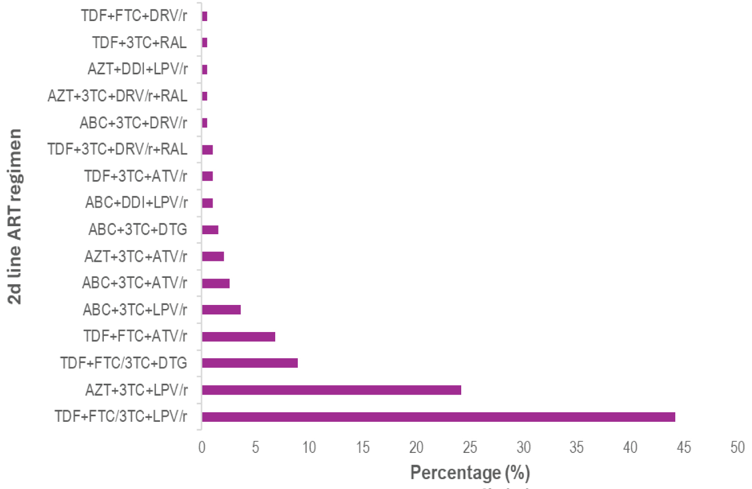 Abbreviations: ART: Antiretroviral Treatment; TDF: Tenofovir Disoproxil Fumarate; FTC: Emtricitabine; DRV/r: Ritonavir-boosted Darunavir; 3TC: Lamivudine; RAL: Raltegravir; AZT: Zidovudine; DDI: Didanosine; LPV/r: Ritonavir-boosted Lopinavir; ATV/r: Ritonavir-boosted Atazanavir; ABC: Abacavir; DTG: Dolutegravir.