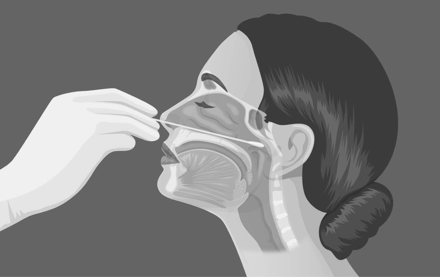 Figure 2: For collecting a nasal swab, a polyester swab with a shaft should be inserted carefully into the nose until reaching the nasal palate and stay there for 15-30 seconds, twist 3-4 times and carefully remove it. The same procedure should be repeated from another naris with another swab. These two swabs should be placed in a sterile tube containing 3 ml viral transport medium or sterile saline.
