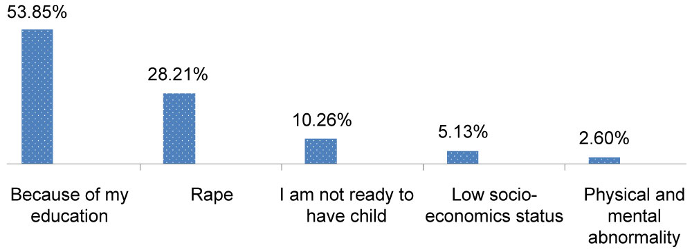 Figure 3: Distribution of respondent's reason of undergoing abortion in Debre Markos University female students, Northwest Ethiopia, April, 2016.