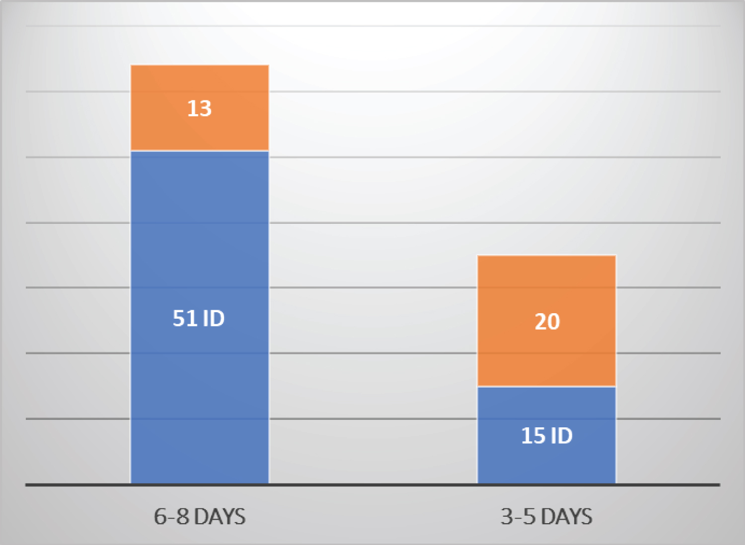 According to the number of days of the menstrual cycle: The study sample was divided into two groups according to the duration of the menstrual cycle: 3-5 days and 6-8 days.