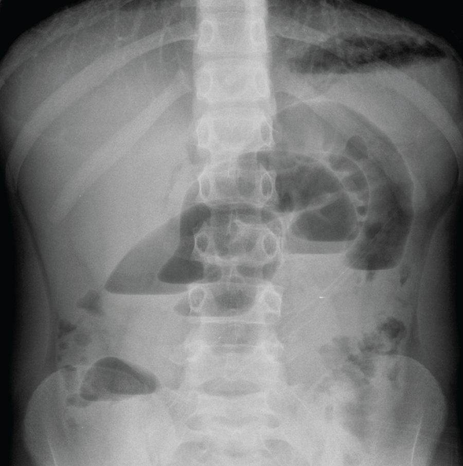 A 11-year-old boy with no relevant medical history was admitted to our emergency department because of colicky, diffuse abdominal associated to vomiting. He had regular bowel movements and no fever. At physical examination abdominal palpation was painful in the right lower quadrant and in mesogastrium with no rebound tenderness, peristalsis was reduced. Blood chemistries were normal. An abdominal plain X-ray study showed gas distension of some small bowel loops in the central region of the abdomen and some air-fluid levels. The abdominal ultrasound scan was normal except for some distended ileal loops filled with liquid in the lower part of the abdomen. The patient was admitted to our surgical ward for overnight clinical observation. Multiple attempts were made but it was not possible to place nasogastric tube for non-cooperation of the young boy. So whe performed repeated clinical evaluations and during the night the patient complained of intermittent pain. On the following morning he had biliary vomiting unresponsive to enema, blood chemistries were unchanged but a second plain abdominal X-ray study showed worsened conditions with the appearance of multiple air fluid levels suggesting a frank intestinal obstruction and warranting emergency surgery (Figure 1).