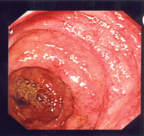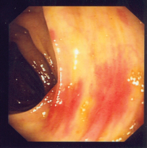 Urgent esophagogastroduodenoscopy (EGD) and colonoscopy were performed. Gross examination on EGD showed vasculitic lesions at stomach antrum, stomach body and duodenum with edematous mucosa (Figure 1). Gross examinations on colonoscopy demonstrated multiple vasculitic lesions and ulcers at ileocecal valve, terminal ileum and throughout the large bowel (Figure 2). Biopsies were taken, and results were consistent with leucocytoclastic vasculitis. In view of these findings as well as his clinical deterioration, he was given pulsed intravenous methylprednisolone 500 mg daily for 3 days, followed by high dose oral prednisolone at 1 mg/kg of body weight daily.