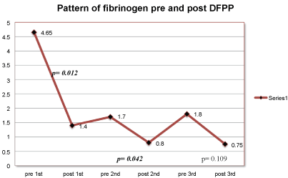 Figure 1: Pattern of serum fibrinogen post each DFPP.