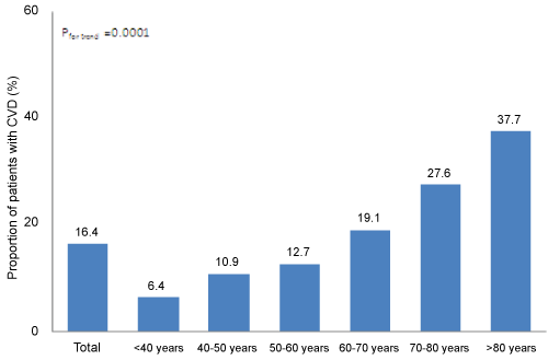 Figure 1: Proportion of patients with cardiovascular disease according to age.