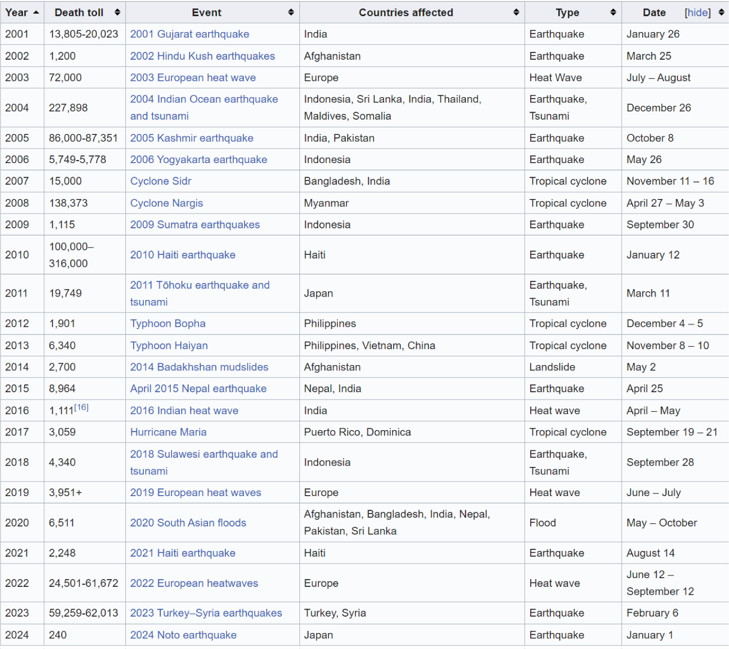 Table 1: 2001 to date natural disaster summary, Ourworldindata.org. View Table 1