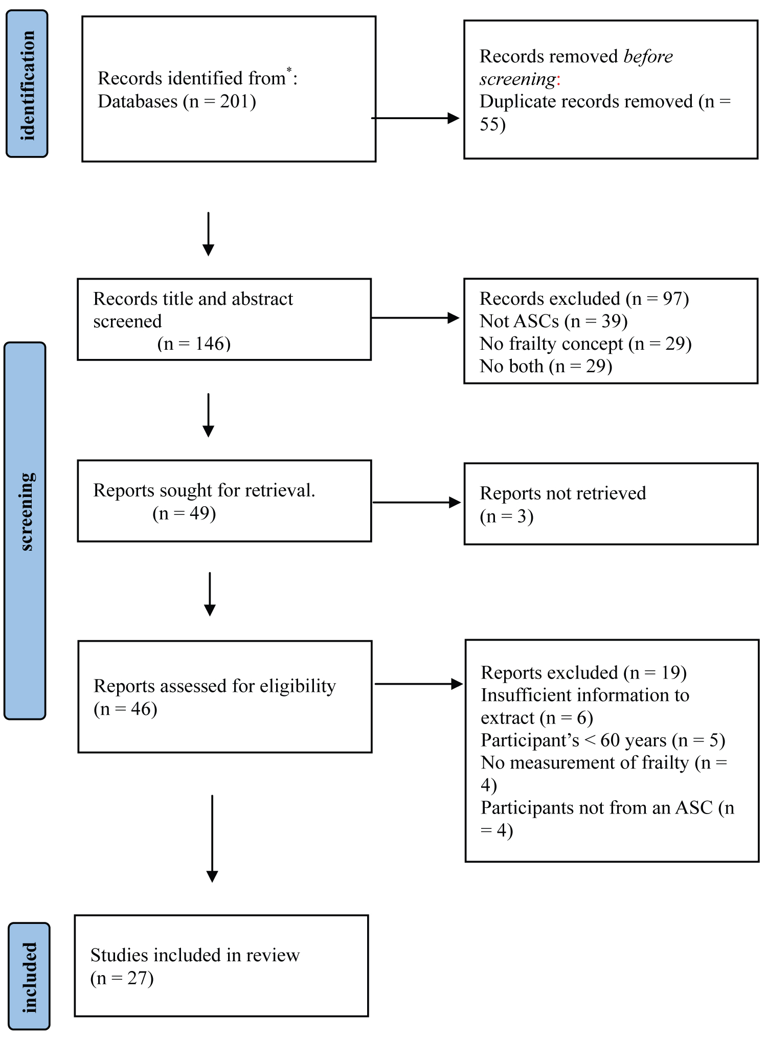 Objective: To address this gap in the literature, we conducted a scoping review to map and synthesize the literature on "frailty research" conducted in ASCs.
