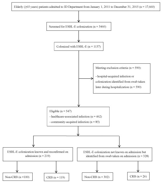 ID: infectious diseases; ESBL-E: extended-spectrum β-lactamase-producing Enterobacteriaceae; CRB: carbapenem. View Figure 1