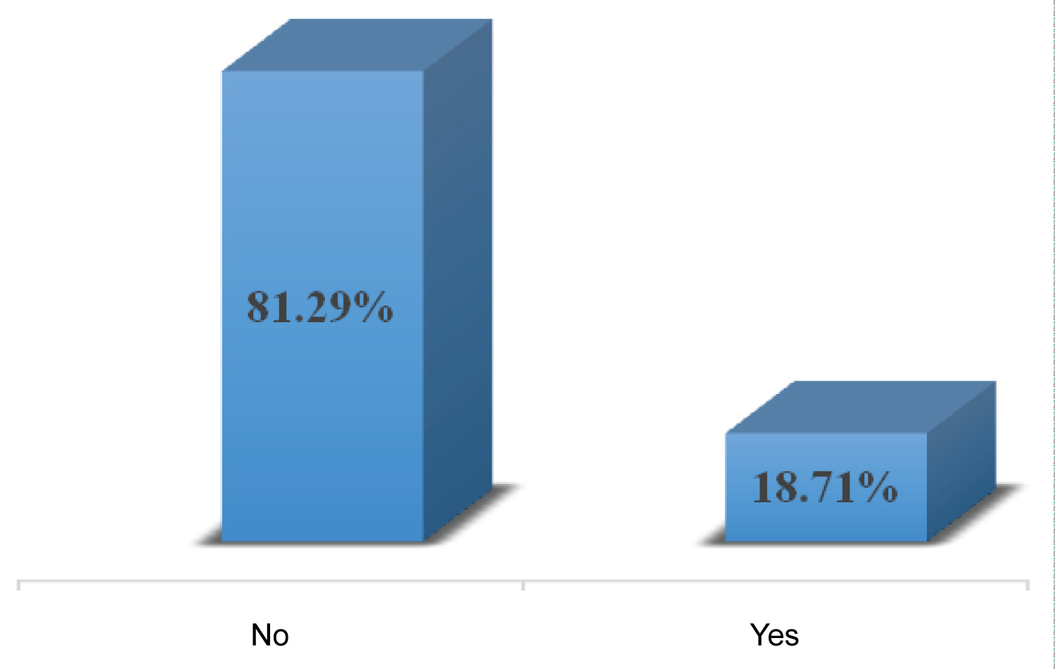 The study showed that only few (18.7%) were known hypertensives. This implies that most people are not hypertensive and that hypertensives form a small proportion of the entire population. With the appropriate preventive measures, its prevalence can be reduced drastically in the community. This agrees with another study that reported that the overall prevalence of hypertension in the Ghanaian population is 13.0% [16].