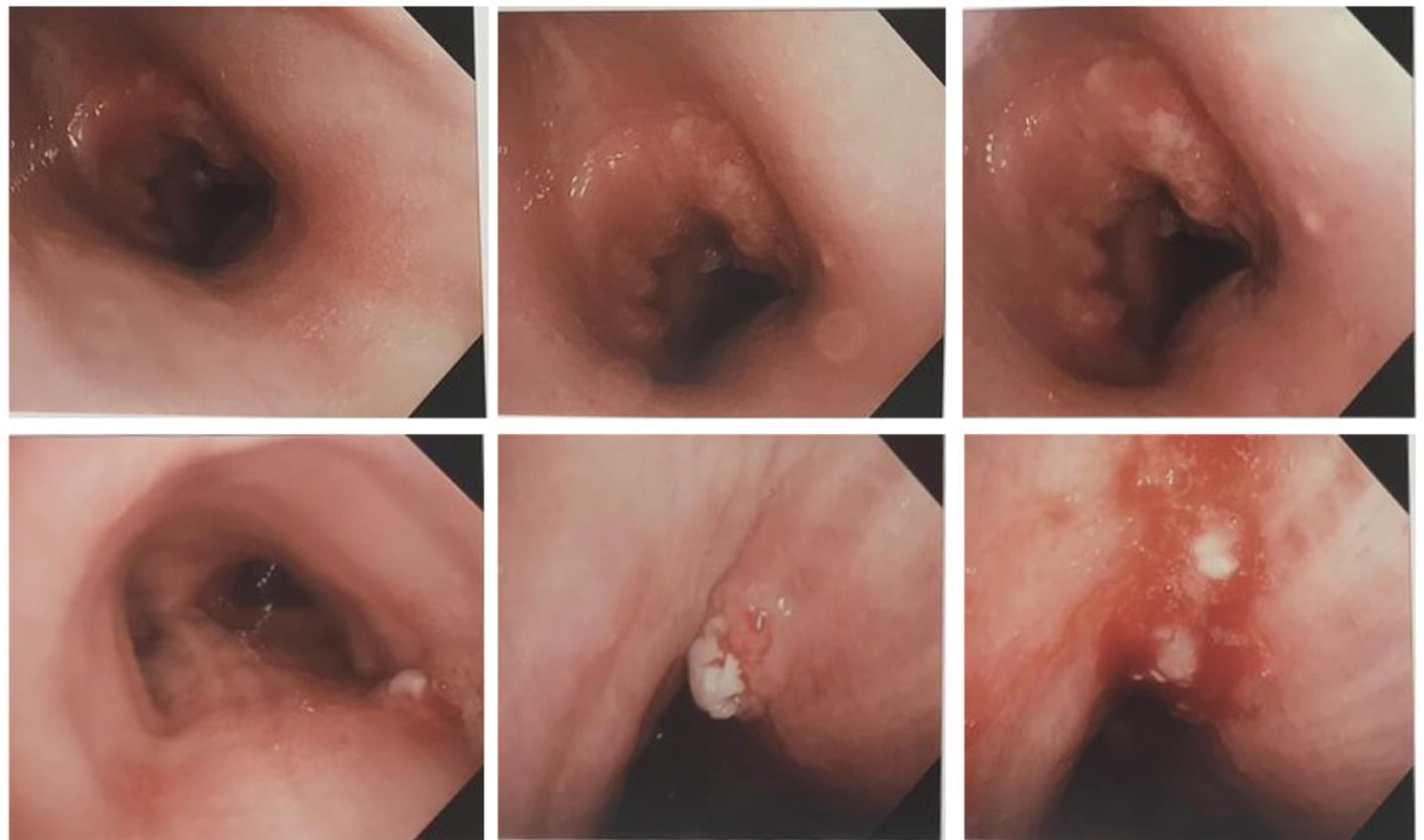Figure 9: Bronchoscopic images showing tracheal mass.