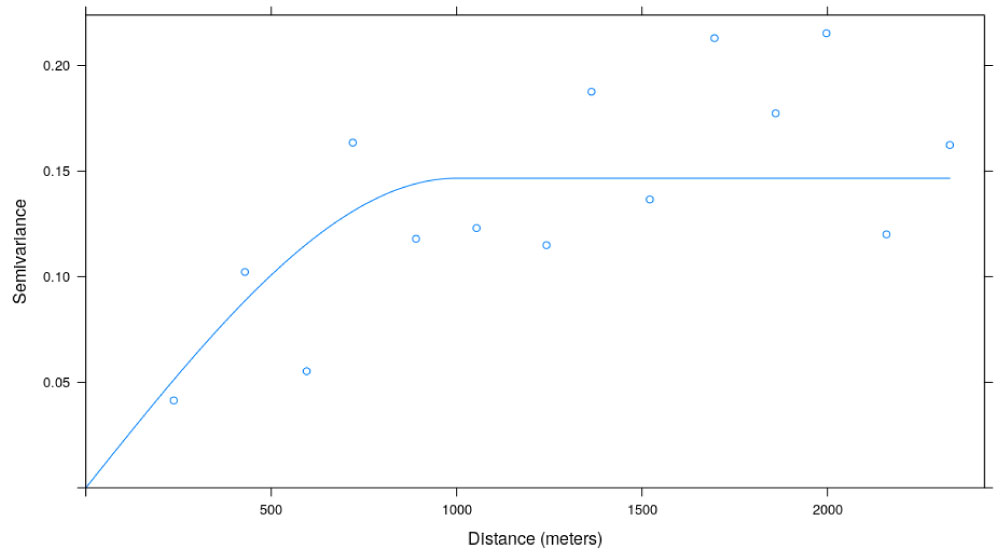 Table 1: Variogram parameters adjusted via a spherical model. View Table 1