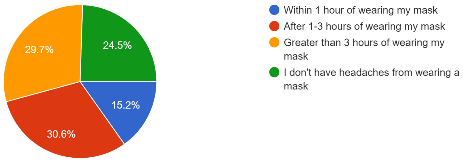 Figure 2: After how many hours of wearing a mask does the survey respondent experience a headache.