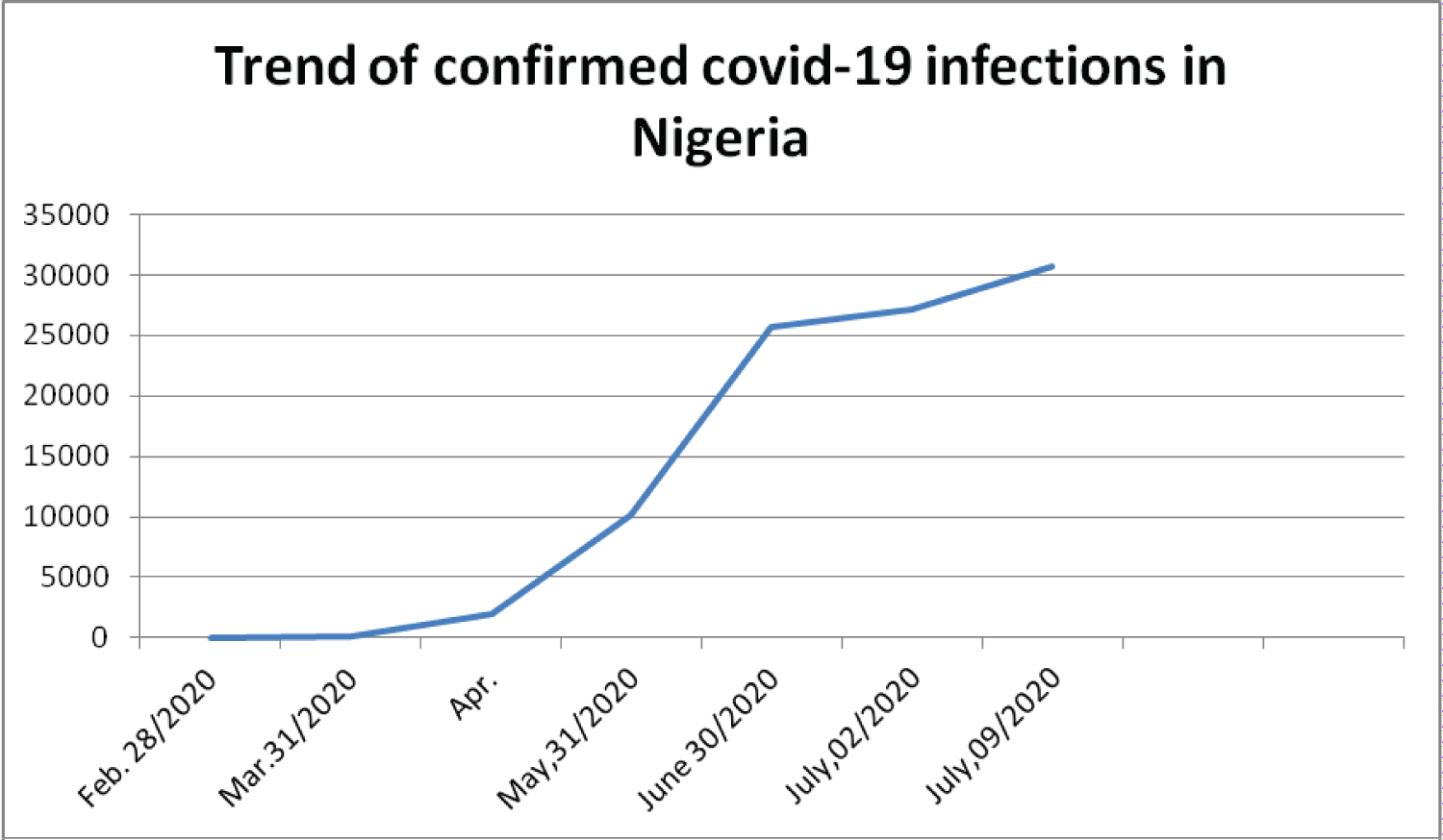 Figure 1: Trend of confirmed Covid-19 infections in Nigeria.